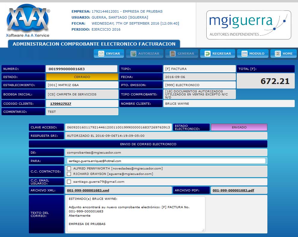Una característica importante de estos contactos, es que los mismos ayudan al envío por correo de comprobantes electrónicos como facturas, notas de crédito, guías de remisión y retenciones a más de una persona como podemos observar en la pantalla de envío de comprobante, la cual se ha modificado acorde a esta nueva opción.